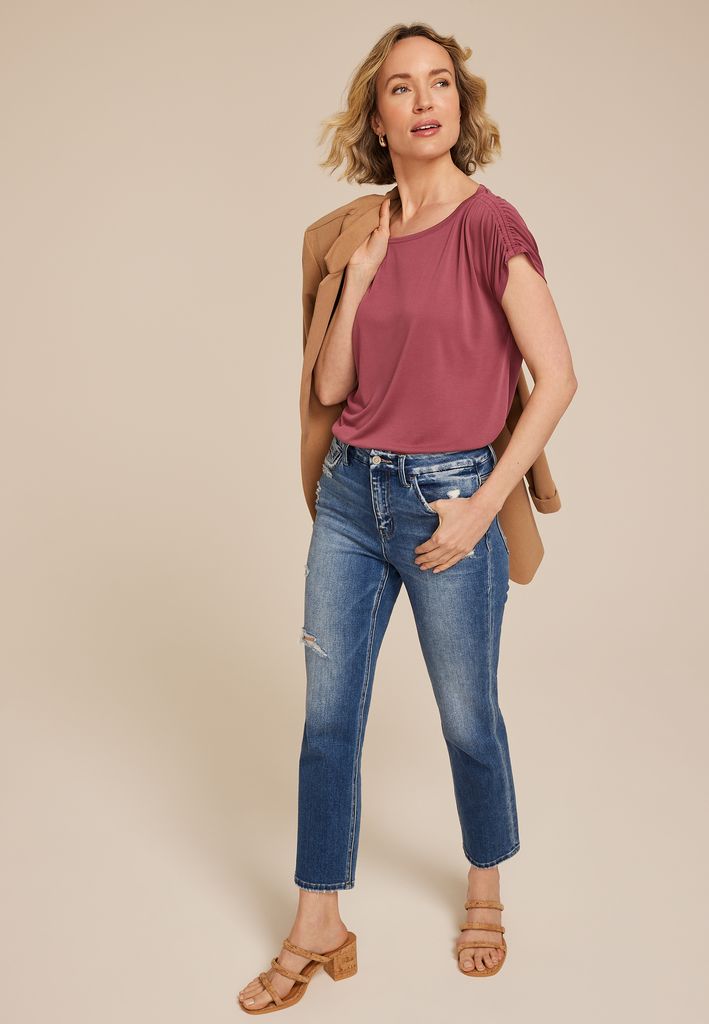 Be the first to review “24/7 Fairhaven Ruched Shoulder Tee”