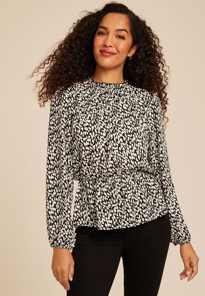 Be the first to review “Abstract Peplum Smocked Waist Blouse”