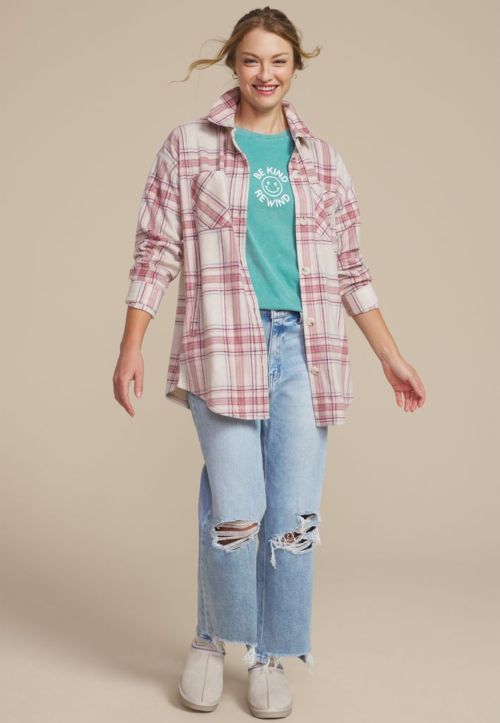 - “Be Kind Rewind” cheerful smiley face graphic