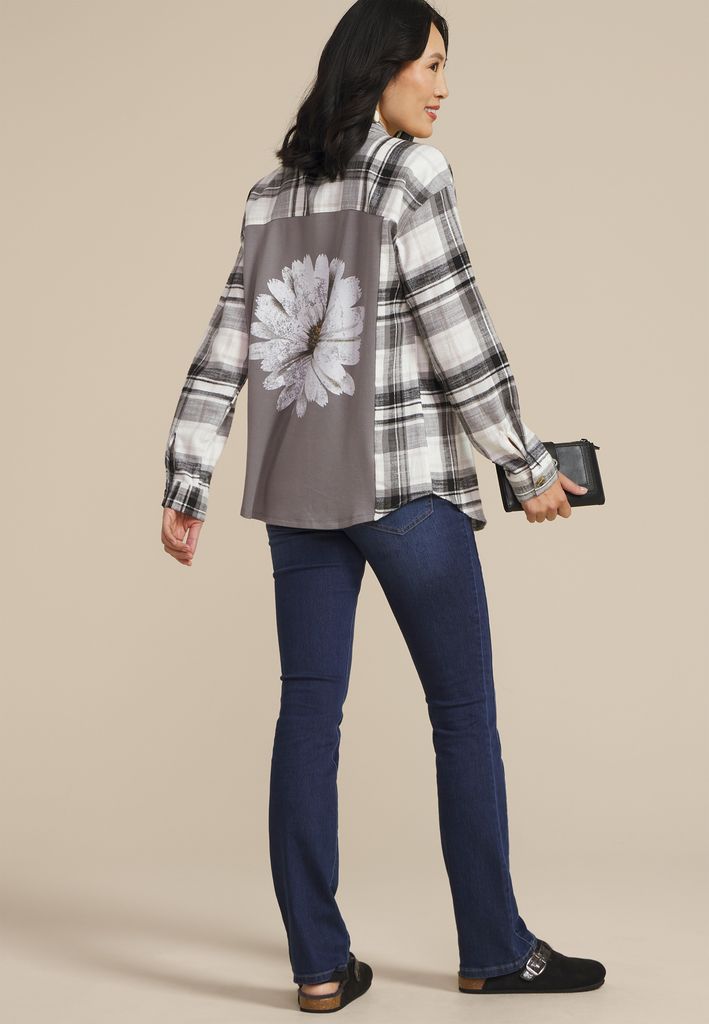 Cabin Plaid Graphic Back Floral Button Down Shirt