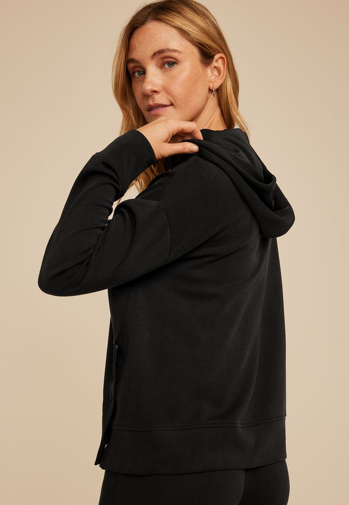 • side snap button details for a modern twist and added versatility