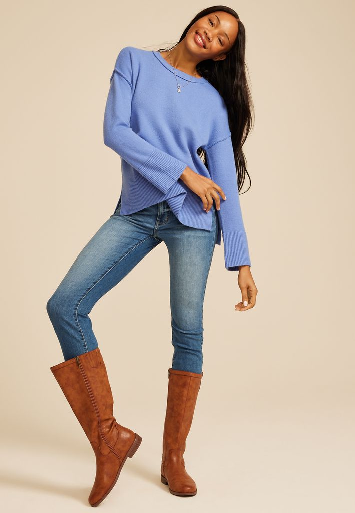 Crew Neck Step Hem Sweater