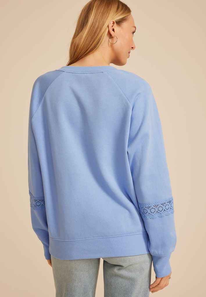 - delicate lace insets along the shoulders and lace band detail around the lower sleeve