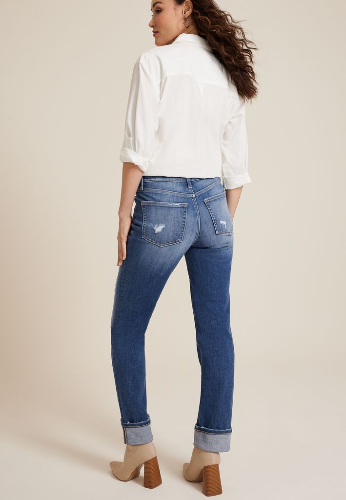 edgely™ Dark High Rise Cuffed Relaxed Straight Jean