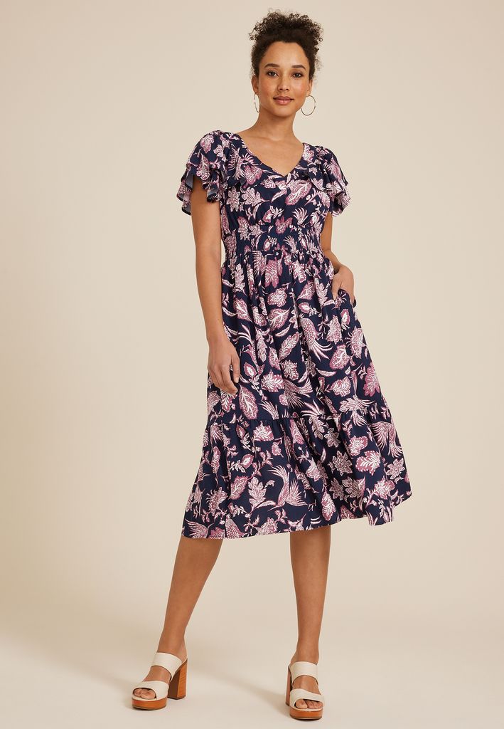 - tiered hemline hits below the knee