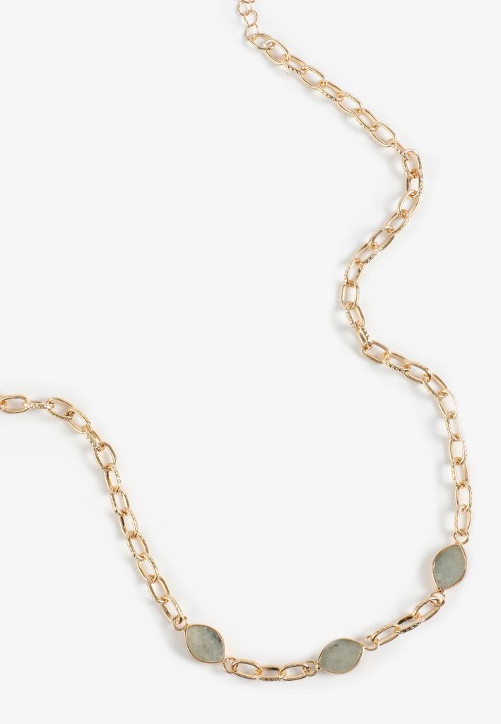 - featuring: elongated textured oval links accented by natural grey agate stones