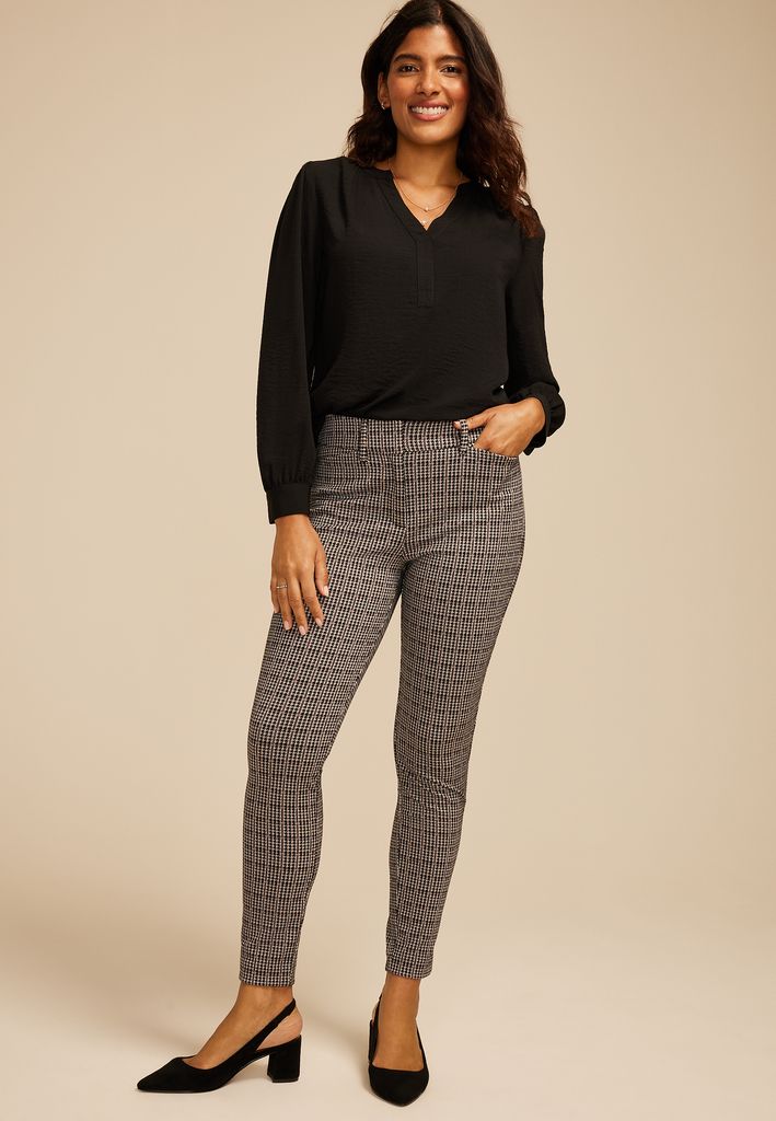 - elevate your look by styling the Houndstooth Ponte Skinny Pants with the matching Houndstooth Plaid Ponte Knit Blazer style: 233744