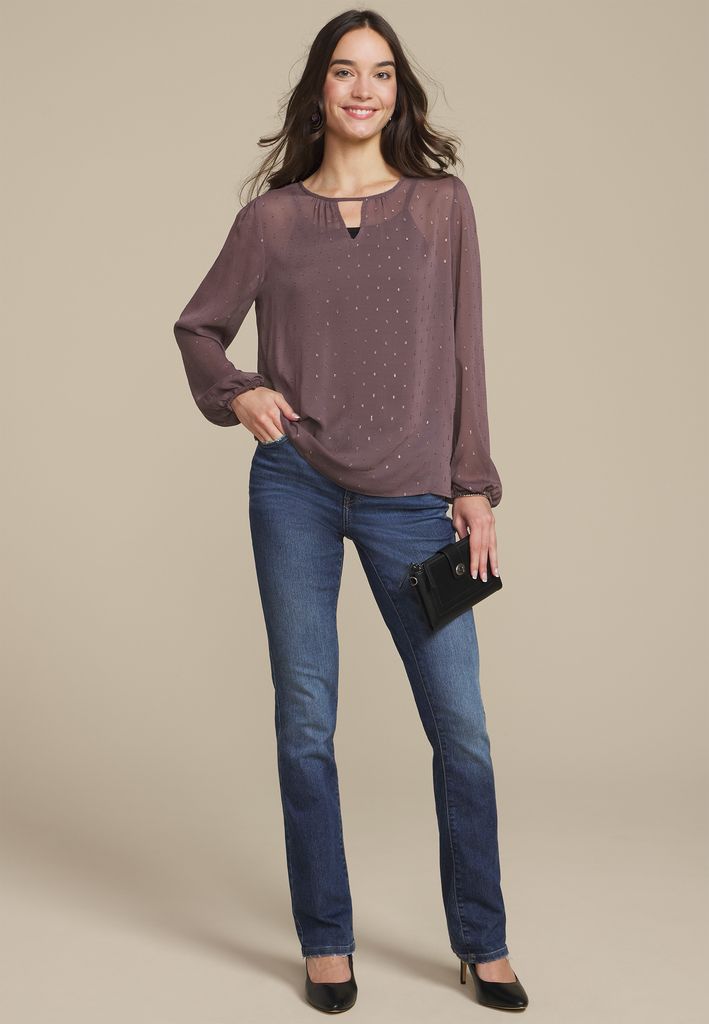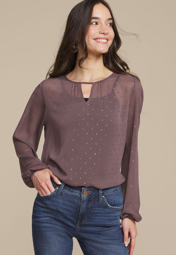 Be the first to review “Leighton Gold Clip Dot Blouse”