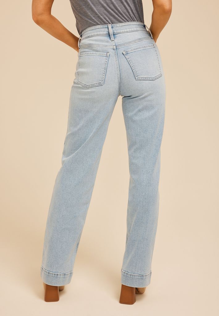 - wide leg: fitted at the hips with a relaxed fit from thigh to hem