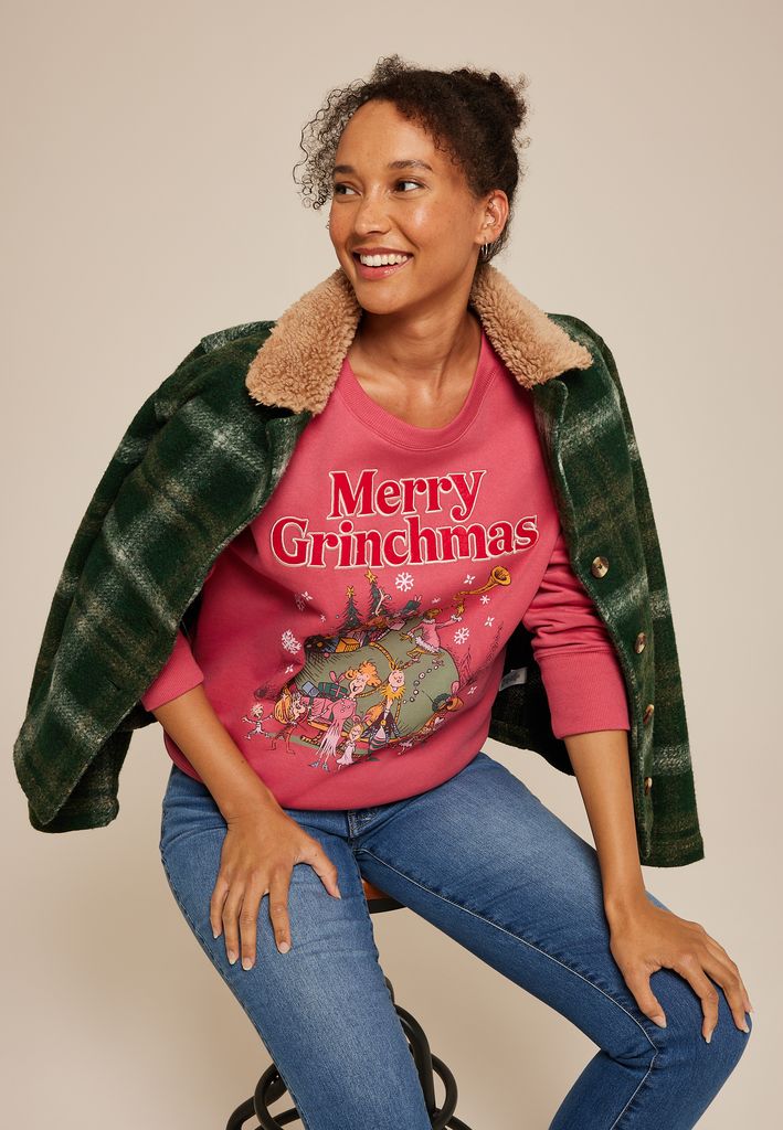 • licensed “Merry Grinchmas” embroidered graphic