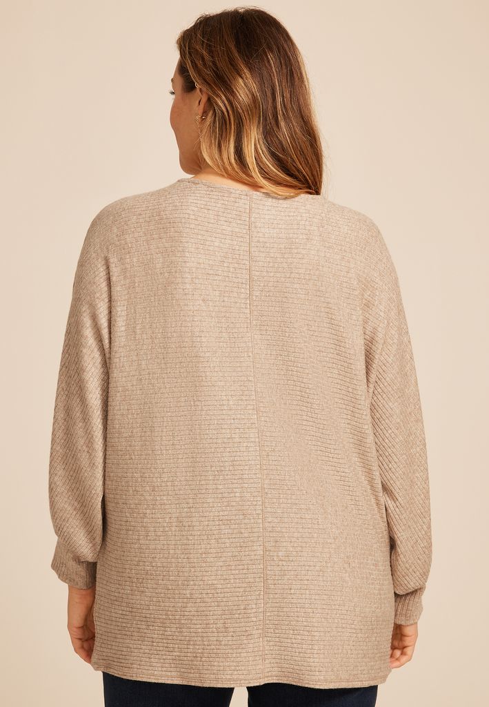 Plus Size 24/7 Dakota Metallic Horizontal Ribbed Dolman