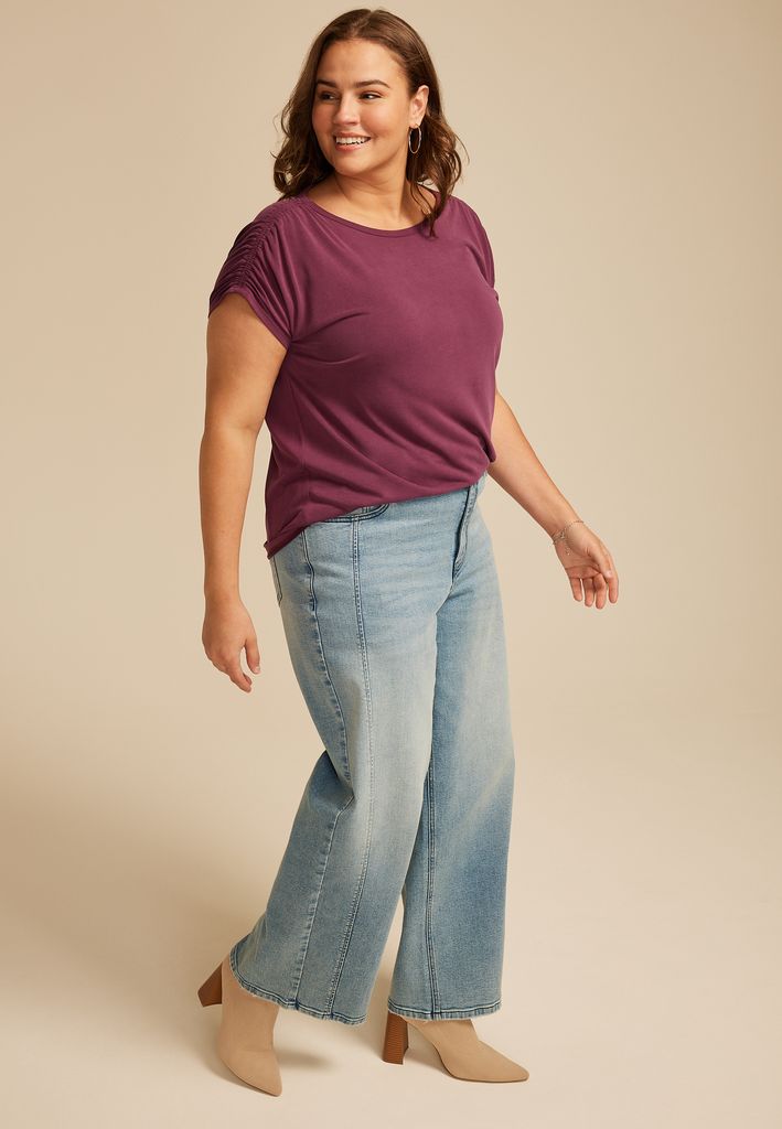 Plus Size 24/7 Fairhaven Ruched Shoulder Tee