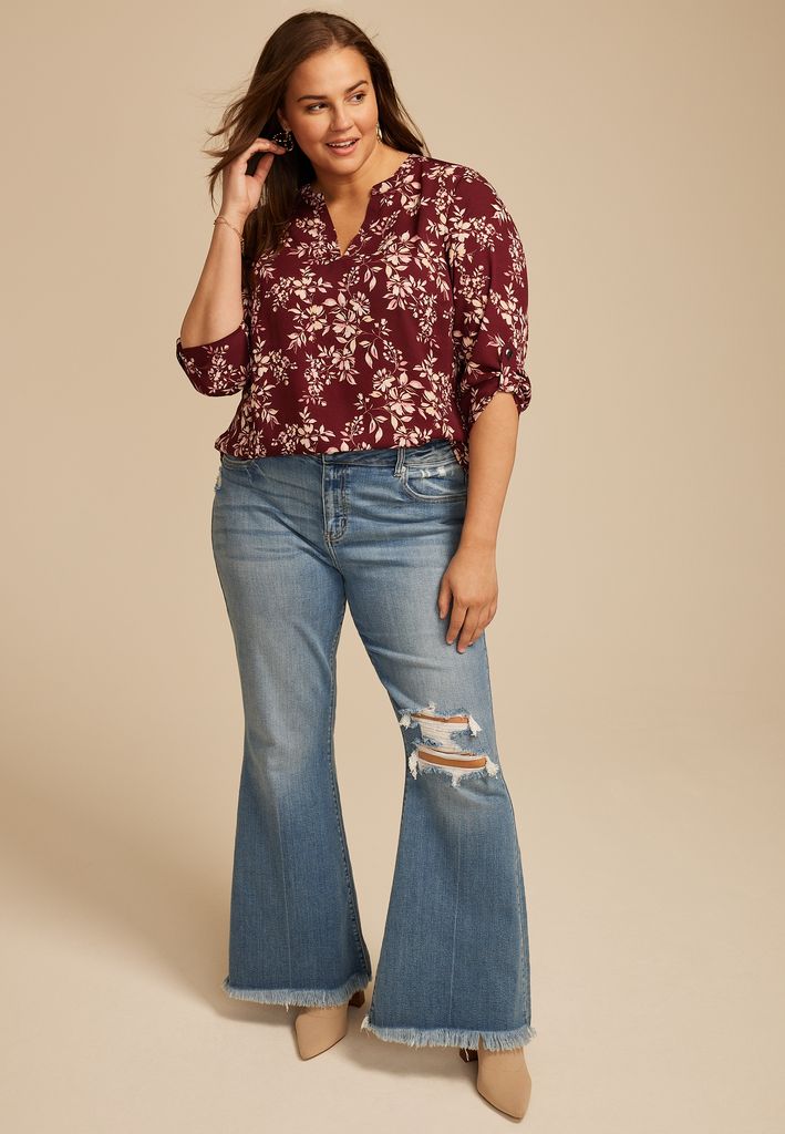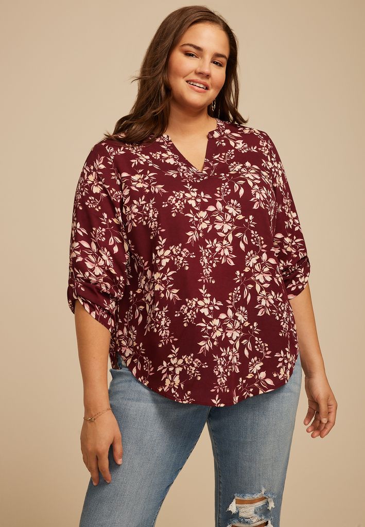 Plus Size Atwood Floral 3/4 Sleeve Popover Blouse