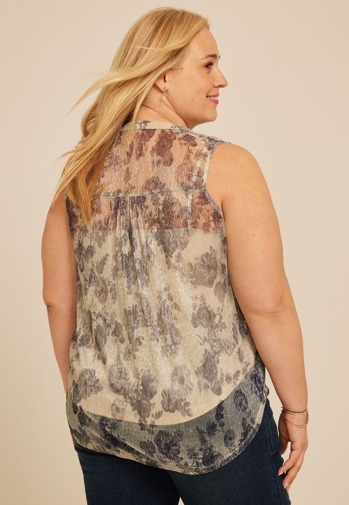 - sheer overlay metallic shimmer with romantic floral design