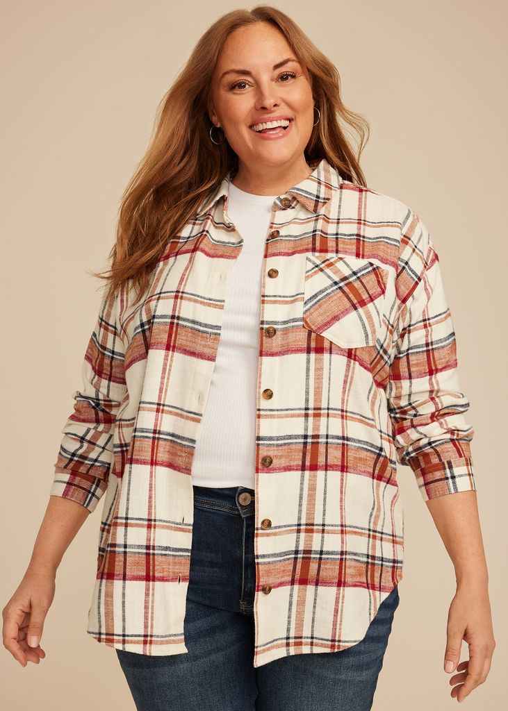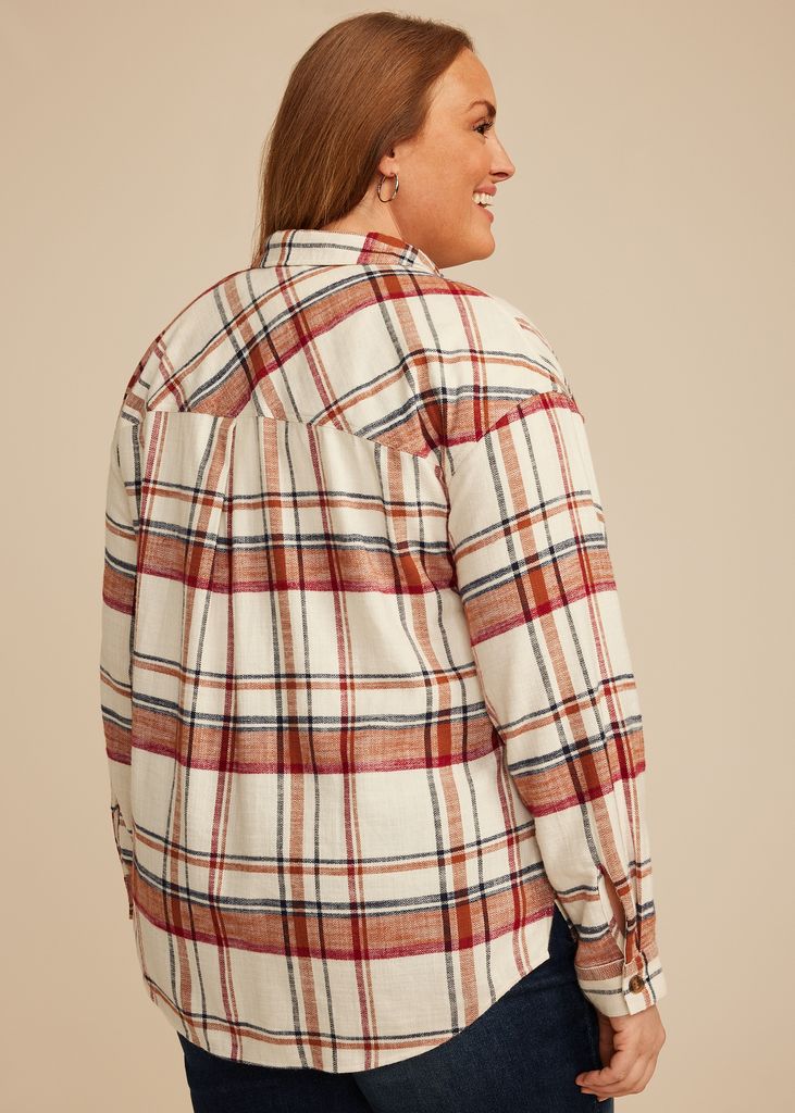 Plus Size Cabin Plaid Boyfriend Tunic Button Down Shirt