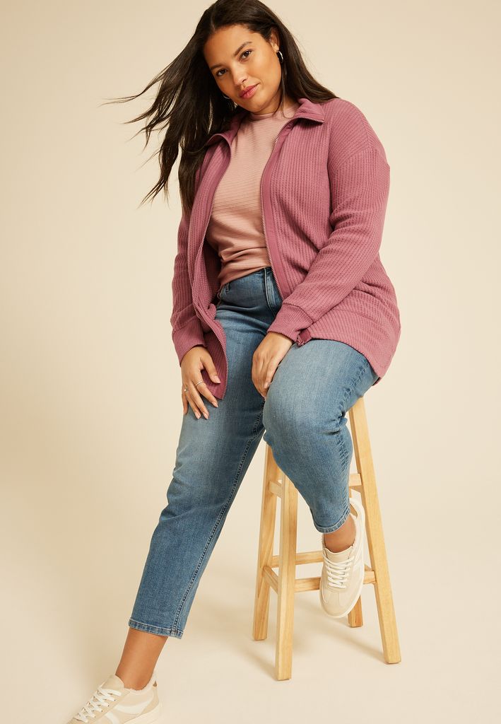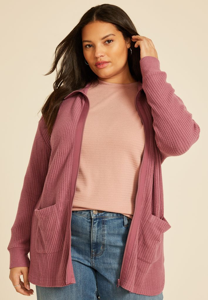 Be the first to review “Plus Size Cozy Waffle Zip Jacket”