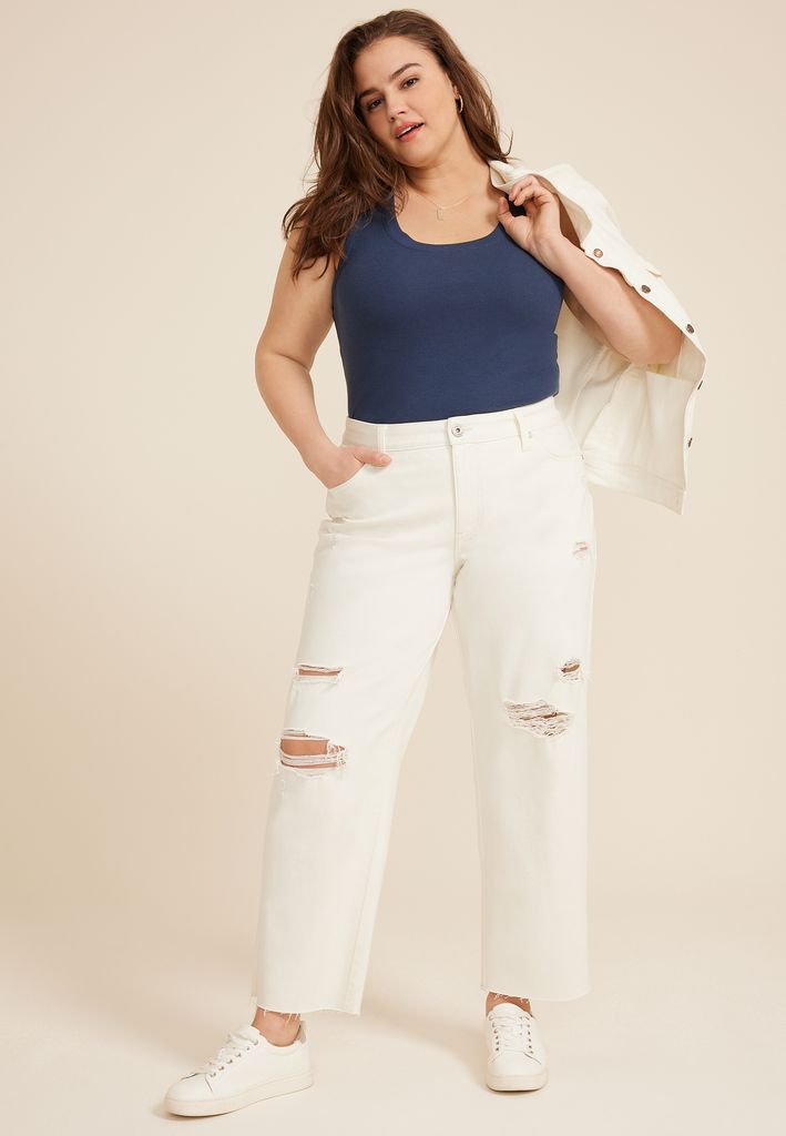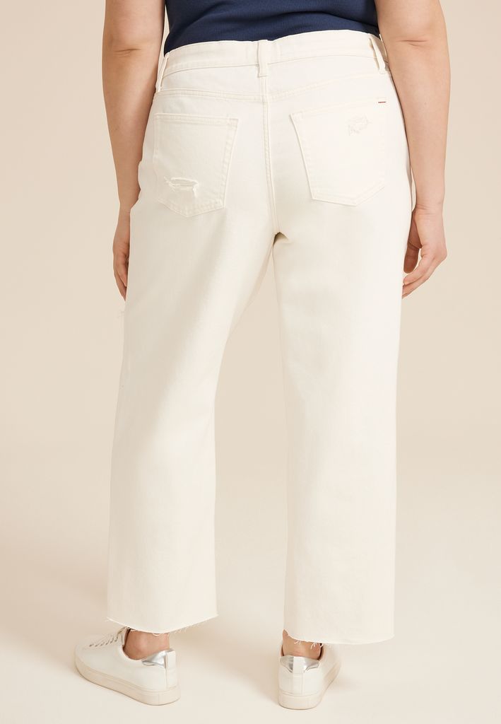 Plus Size edgely™ High Rise Raw Hem Relaxed Straight Ankle Jean