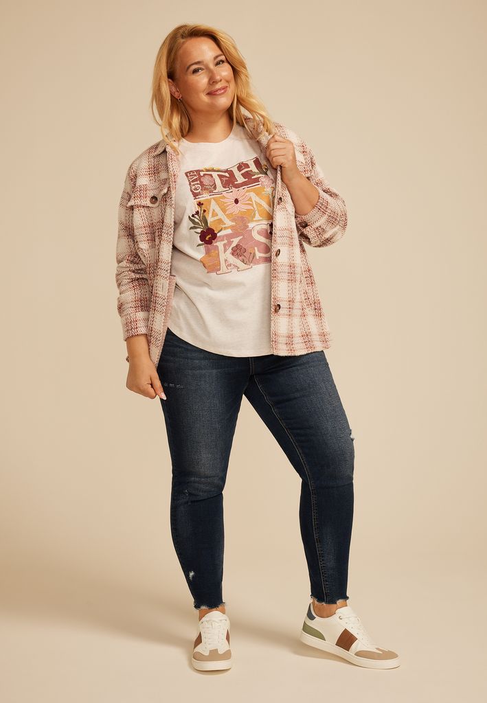 Plus Size Floral Embroidered Give Thanks Classic Fit Graphic Tee