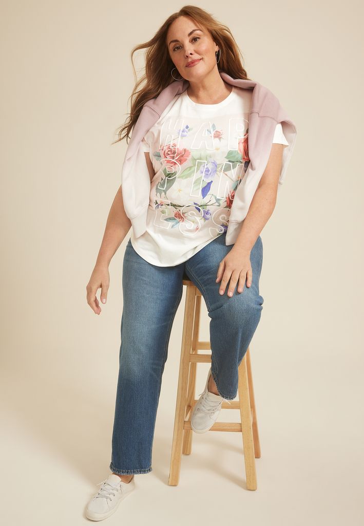 Plus Size Floral Happiness Classic Fit Graphic Tee