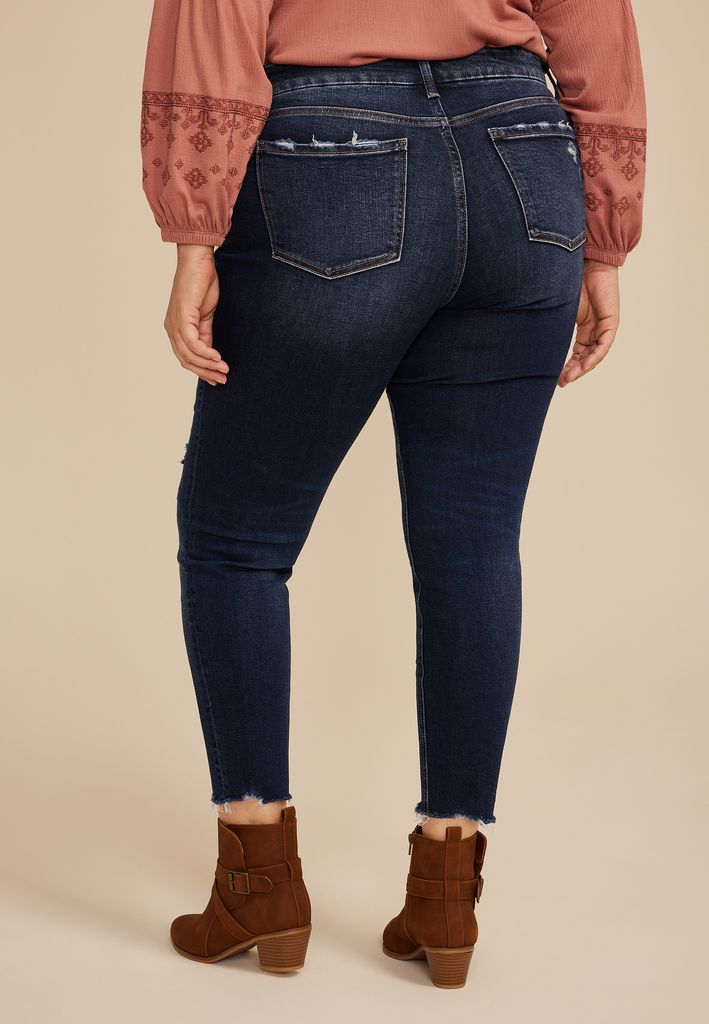 Plus Size Flying Monkey™ Mid Rise Ripped Hem Skinny Jean
