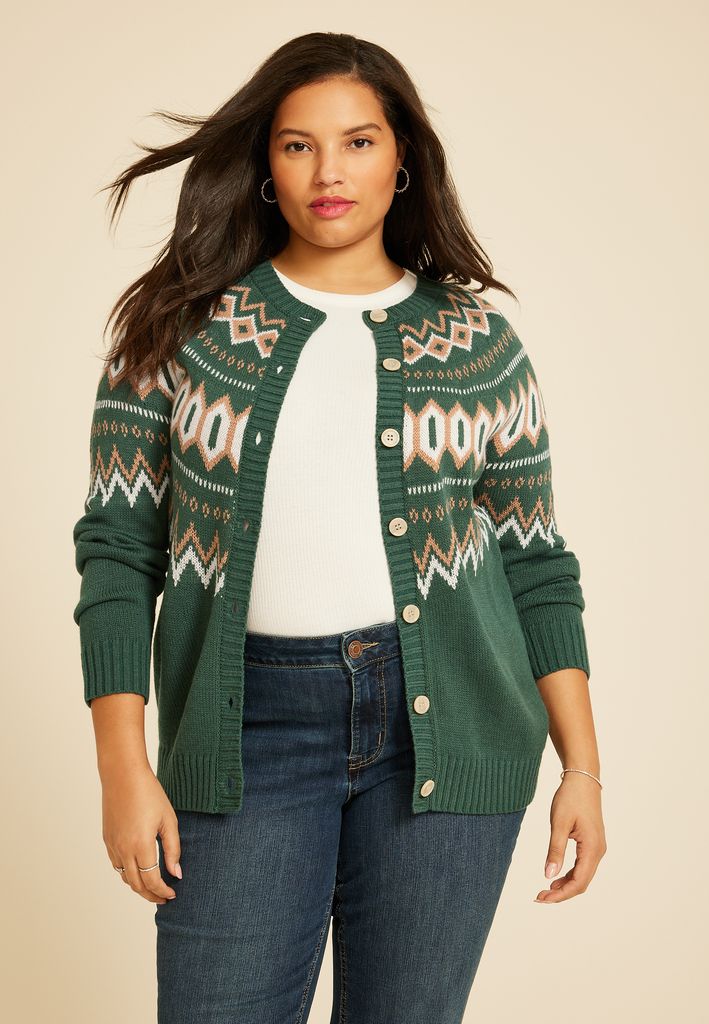 Be the first to review “Plus Size Green Fair Isle Button Front Cardigan”
