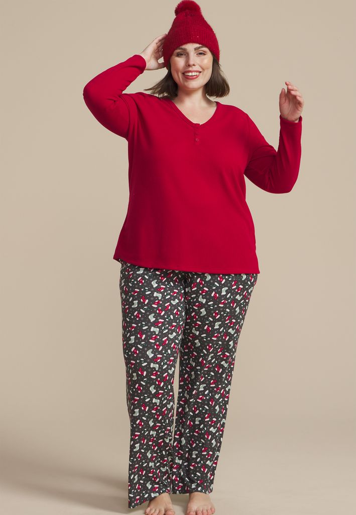 - all over red and green holiday stockings and snowflakes