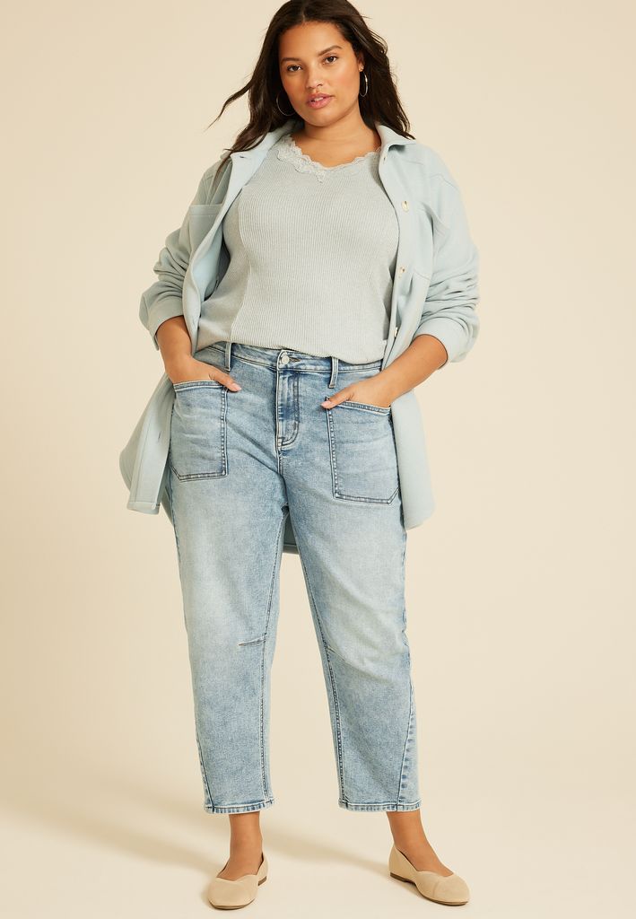 Plus Size High Rise Utility Barrel Jean
