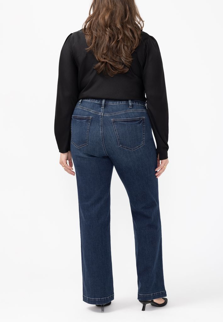 - trouser jean: A refined denim style with a tailored silhouette, wide leg, and clean finish perfect for dressing up or down.