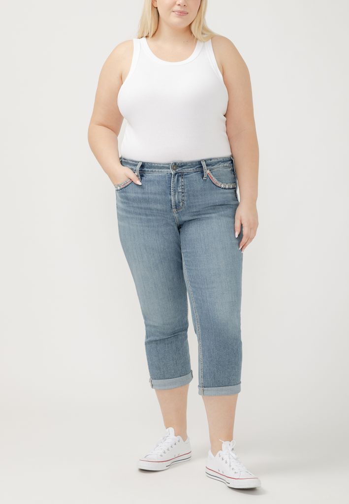 Plus Size Silver Jeans Co.® Elyse Mid Rise Luxe Stretch Americana Cuffed Capri