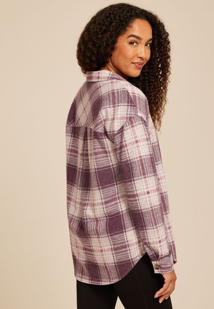 Plush Knit Plaid Boyfriend Button Down Shirt