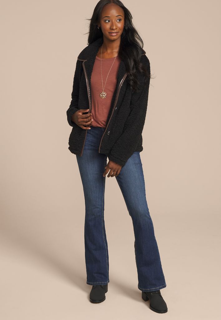Be the first to review “Sherpa Faux Leather Trim Jacket”