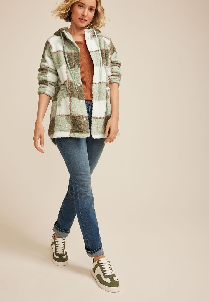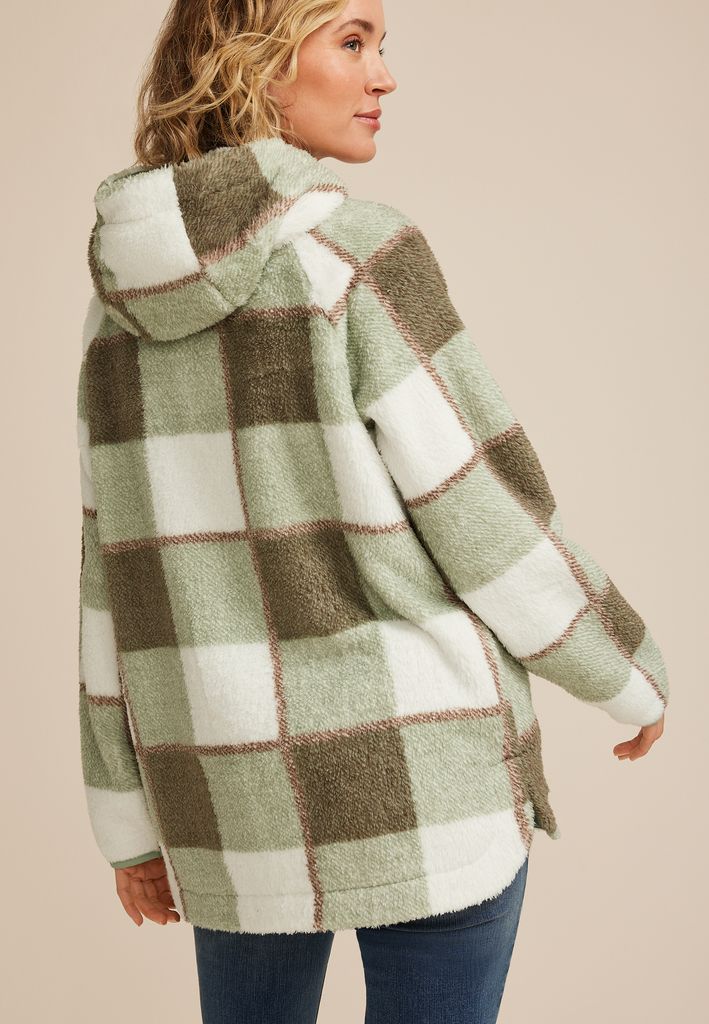 Be the first to review “Sherpa Plaid Hooded Snap Button Front Jacket”