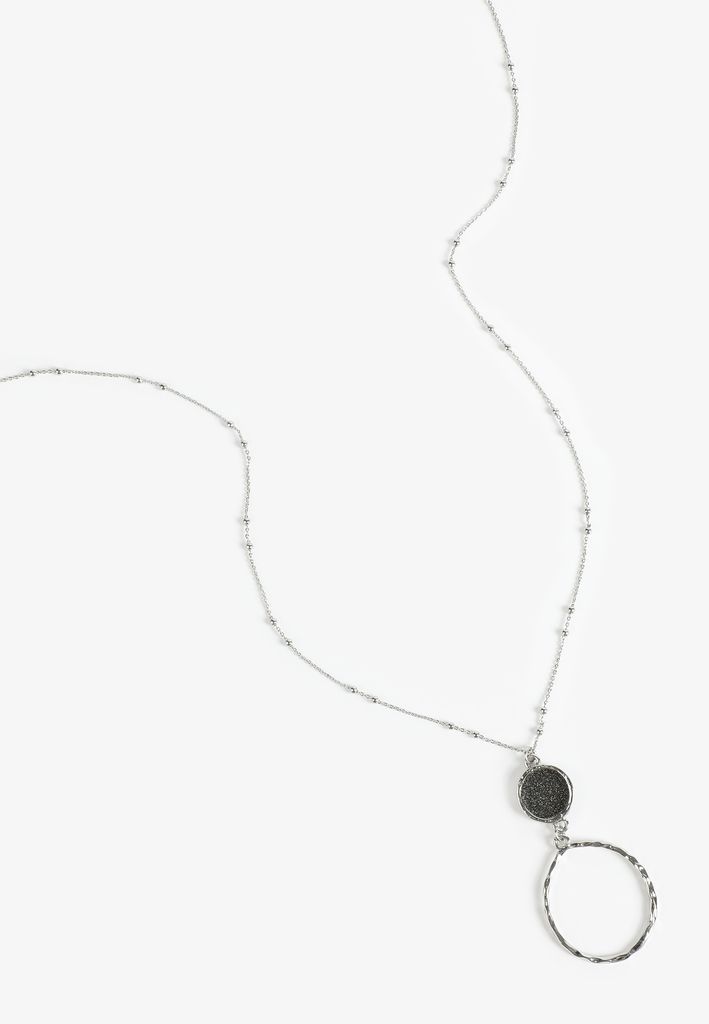 - one circle has a black shimmering detail that adds sparkle and contrast. and the other has open hammered textured metal circle