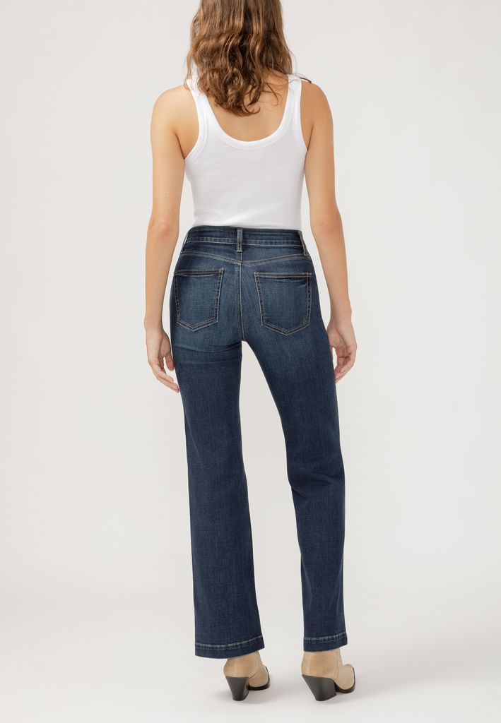 - trouser jean: A refined denim style with a tailored silhouette, wide leg, and clean finish perfect for dressing up or down.