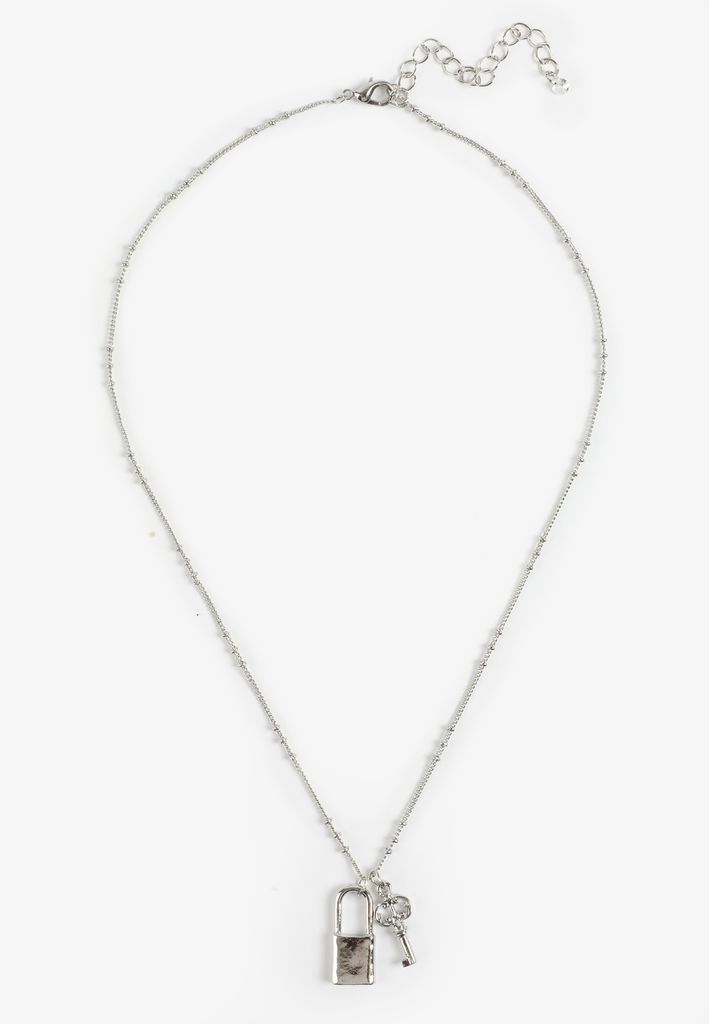 - features:a intricate vintage style key charm and a sleek polished lock charm