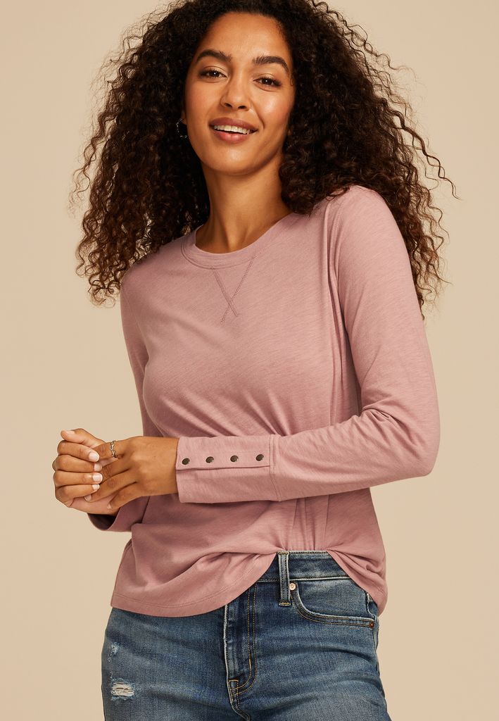 Be the first to review “Solid Long Sleeve Snap Button Cuff Top”