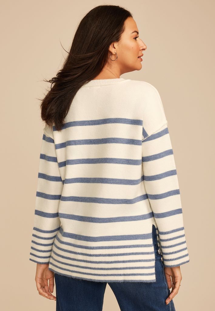 Be the first to review “Striped Crew Neck Step Hem Sweater”