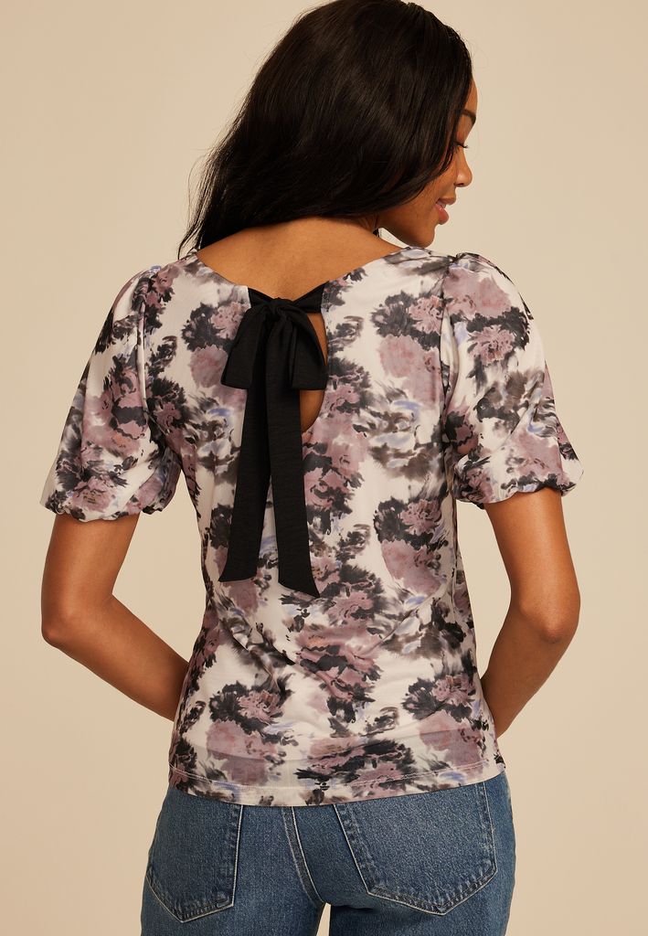 Be the first to review “Studio Y Abstract Floral Mesh Puff Sleeve Blouse”