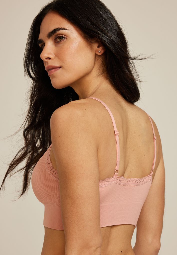 True Stretch Seamless Ribbed Lace Trim Bralette