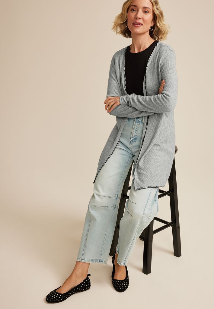 Be the first to review “Whipstitch Trim Open Front Cardigan”