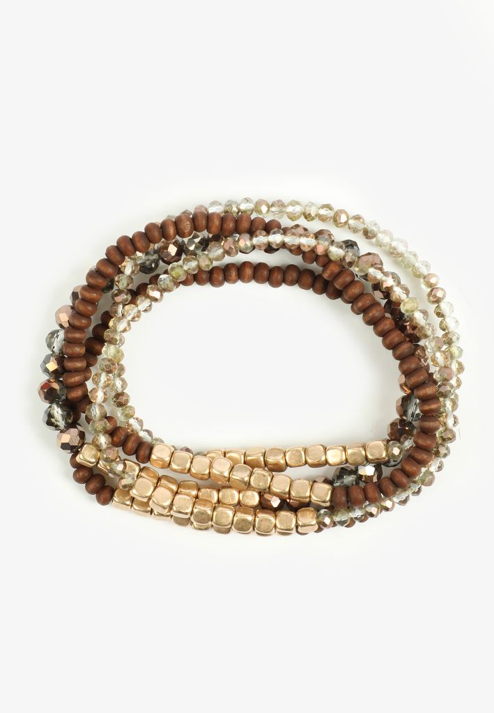 - wood, bronze, faceted crystal iridescent and gold beaded details