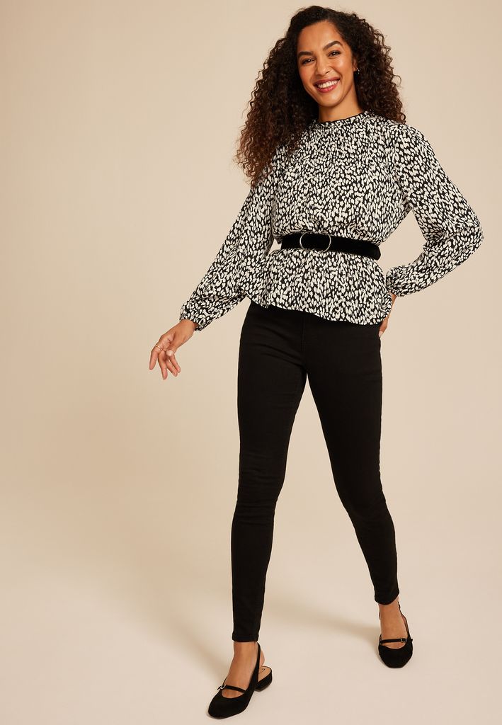 Be the first to review “Abstract Peplum Smocked Waist Blouse”
