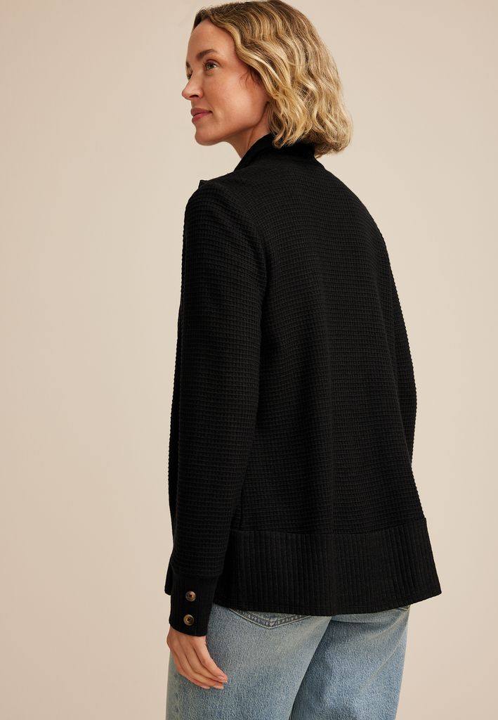 - overlapping front creates a draped, asymmetrical hemline for a modern silhouette