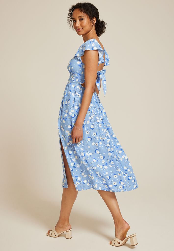 Band Of The Free Floral Flutter Sleeve Midi Dress