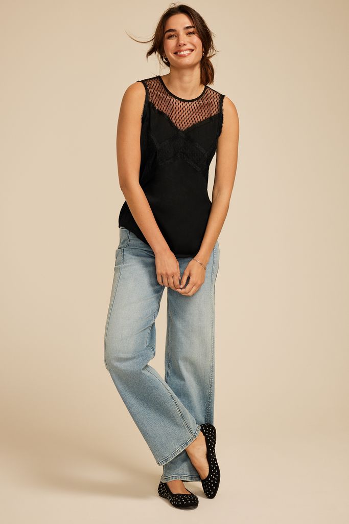 • Pieced lace panel with geometric pattern at the chest and shoulders