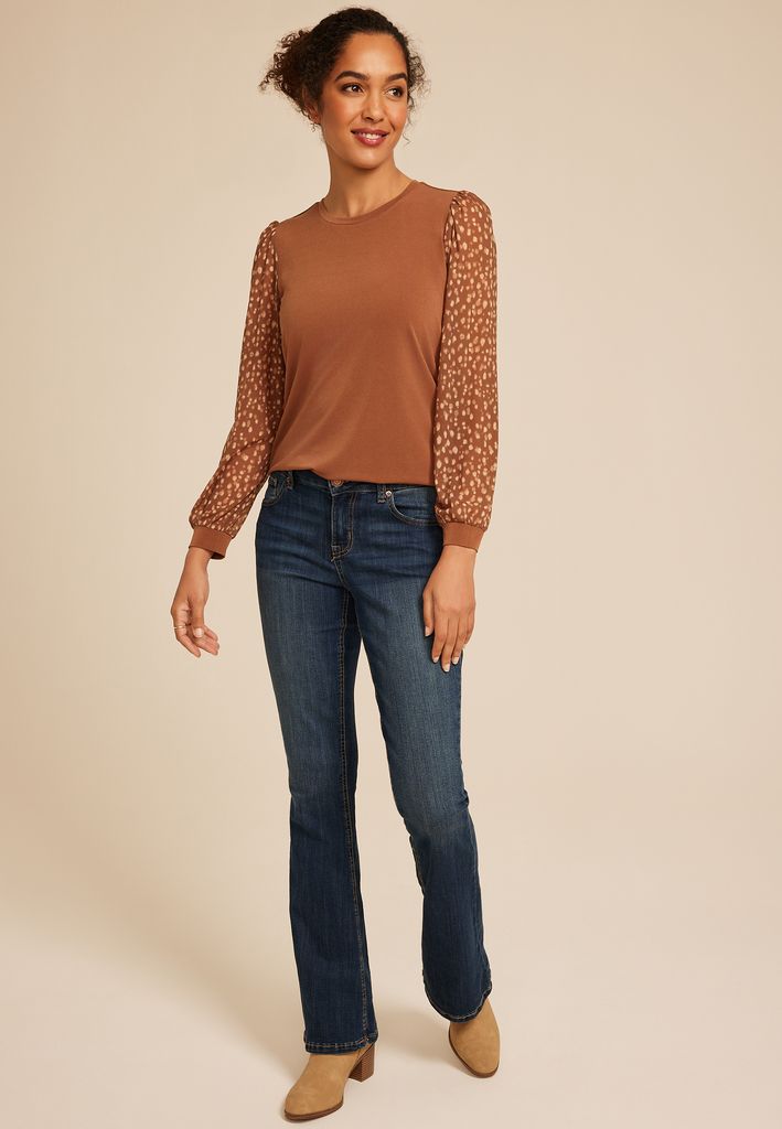 Be the first to review “Brown Printed Mesh Puff Sleeves Top”