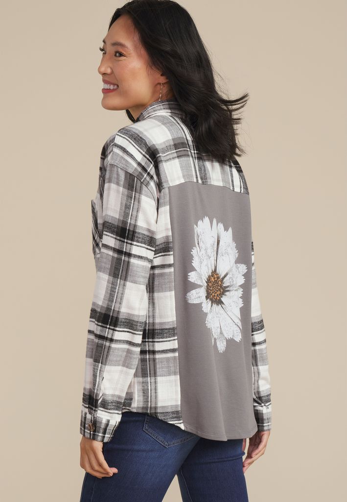 Cabin Plaid Graphic Back Floral Button Down Shirt