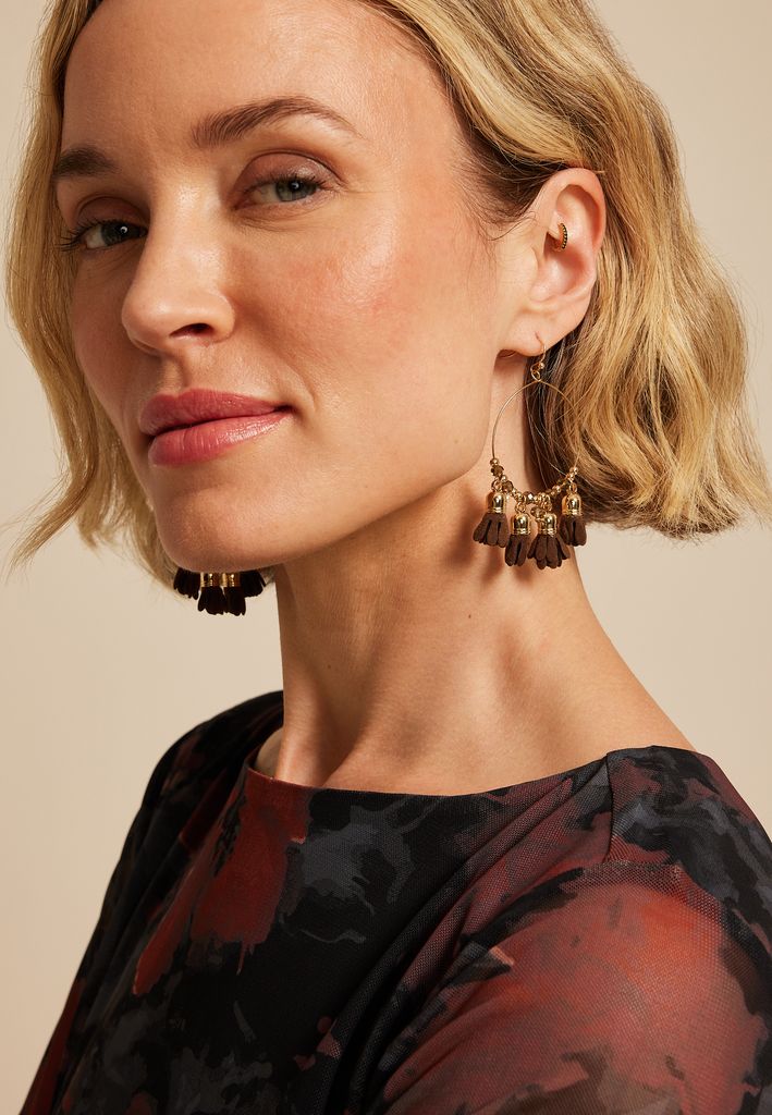 Be the first to review “Dark Brown Faux Suede Floral Petal Hoops Earrings”