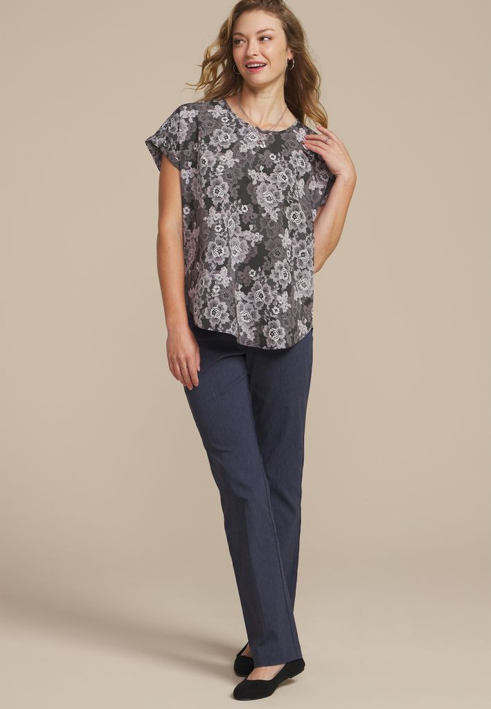 Delton Floral Lace Print Zipper Back Blouse