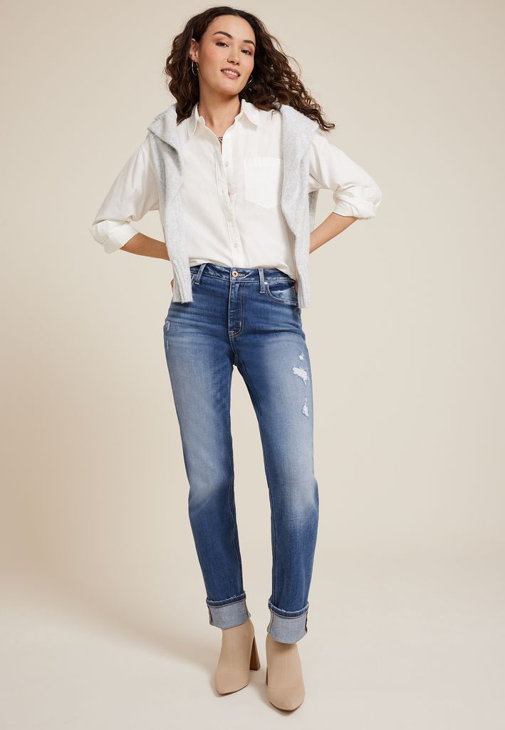 edgely™ Dark High Rise Cuffed Relaxed Straight Jean